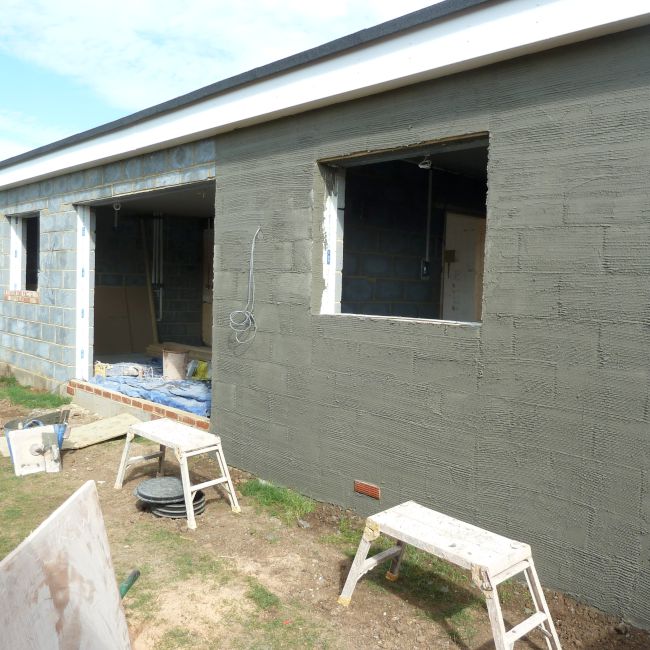 Typical external rendering is Pebble dashing, Tyrolean and plainface finish. Plainface finish is the most common. It should be applied to a well-keyed backing coat called a scratch coat.